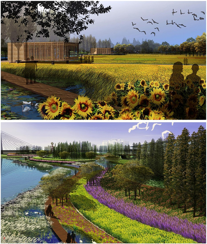 規(guī)模:總用地面積9.3平方公里,其中建設(shè)用地5.9平方公里,水域面積3.4平方公里(含河岸灘涂與島嶼)。